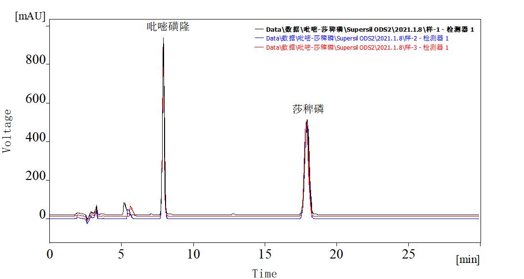 環(huán)境_UV240nm_Supersil ODS2 5μm_吡嘧磺隆-莎稗磷樣液