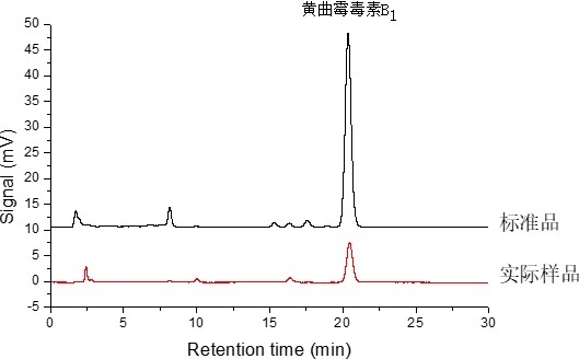 黃曲霉毒素B1是二氫呋喃氧雜萘鄰?fù)难苌?,是已知的化學(xué)物質(zhì)中致癌性強(qiáng)的一種。黃曲霉毒素B1的急性毒性是氰化鉀的10倍,砒霜的68倍,慢性毒性可誘發(fā)癌變,致癌能力為二甲基亞硝胺的75倍,人的原發(fā)性肝癌也很可能與黃曲霉毒素有關(guān),其毒性作用主要是對肝臟的損害,因此需對食品中的黃曲霉毒素進(jìn)行檢測。