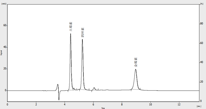 食品安全是關系國計民生的大事,抗生素殘留也一直倍受人們關注。經(jīng)常使用含有抗生素的食品,會使抗生素在體內蓄積,使人產(chǎn)生耐藥性,引起各種組織器官病變,甚至癌變。依利特使用EClassical 3200液相色譜儀匹配經(jīng)典的SinoChrom ODS-BP色譜柱,對豬肉中殘留的四環(huán)素類抗生素進行分析檢測。