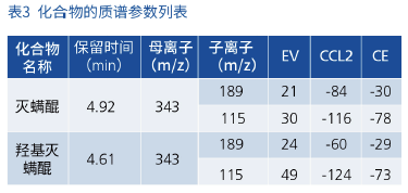 表 3 化合物的質譜參數(shù)列表