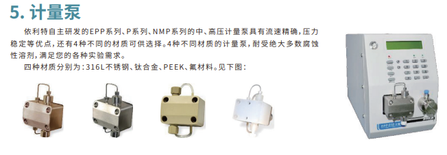 - EPP 系列的計(jì)量泵除了 EPP010S 外,還有 EPP050S、EPP100S、EPP300S,其功能與特點(diǎn)與 EPP010S 相近,區(qū)別在于流速范圍不同。