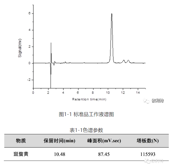 進(jìn)樣分析濃度為5.0μg/mL準(zhǔn)品工作液,使用上述色譜條件,結(jié)果如下圖所示。