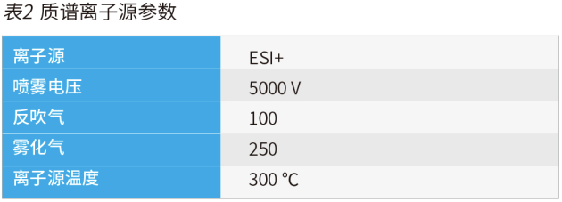依利特 EClassical 3200L-MS2 Vertical 9100 三重四極桿液質(zhì)聯(lián)用系統(tǒng)進行分析,離子源參數(shù)及目標(biāo)化合物質(zhì)譜參數(shù)見表 2 和表 3。