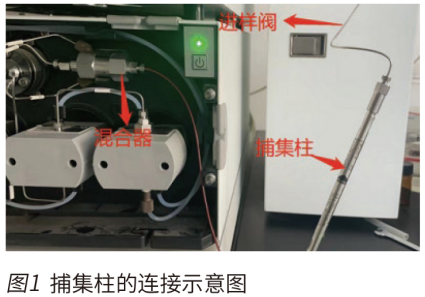 由于該類化合物為增塑劑,部分待測化合物會出現(xiàn)在液相色譜的管路中,形成本底干擾,故在泵的混合器出口后和自動進樣器的進樣閥前連接一根色譜柱作為捕集柱,可將溶劑中的干擾物與樣品瓶中待測物在分析色譜柱上分開,如右圖 1 所示。本方法一針進樣測定 6 種鄰苯二甲酸酯類化合物,圖 2 中展示了 6 種化合物的提取離子譜圖??梢姼鱾€化合物的峰型對稱,所有異構(gòu)體均取得良好的分離,并保證每個色譜峰上有足夠的采集點數(shù),以便獲得準(zhǔn)確的結(jié)果及優(yōu)異的重復(fù)性。