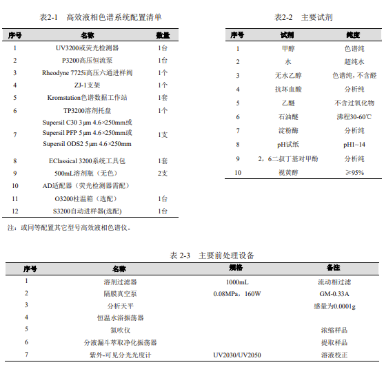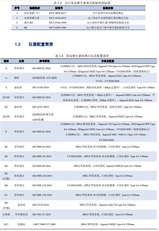 1.1 HPLC 法測(cè)定維生素含量的標(biāo)準(zhǔn) 1