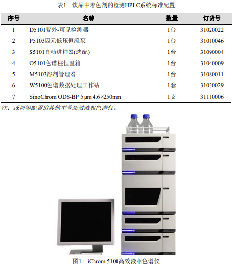 本實(shí)驗(yàn)參考 GB/T 21916-2008《水果罐頭中合成著色劑的測定 高效液相色譜法》 及 GB/T 5009.35-2003《食品中合成著色劑的測定》,采用大連依利特公司生產(chǎn)的高效液相色譜儀,對著色劑標(biāo)準(zhǔn)品、線性及加標(biāo)回收率等進(jìn)行檢測方法驗(yàn)證,并檢測實(shí)際飲品中檸檬黃、胭脂紅、日落黃的添加情況。