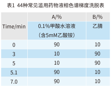 MS2 Vertical 9100 建立了快速、高靈敏度和可靠的 LC-MS/MS 實驗方法測定常見 44 種濫用藥物的含量。實驗結(jié)果表明,本方法具有分析速度快、線性范圍寬和靈敏度高等特點,適用于司法刑偵領域中常見濫用藥物的定性定量分析。