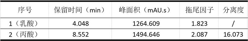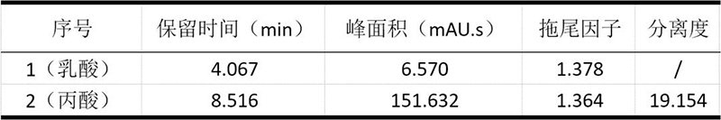 乳酸和丙酸色譜參數(shù)表