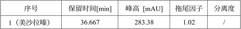 精確稱量美沙拉嗪樣品50mg到100mL的容量瓶中,加75mL流動相,超聲溶解后用流動相定容至刻度,搖勻,過濾膜,待進(jìn)樣。