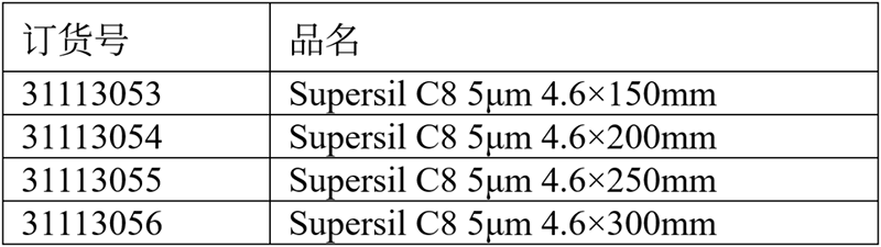 使用依利特新的EClassical 3200高效液相色譜儀,搭配Supersil C8色譜柱,能很好的對目標(biāo)物進(jìn)行分析,且峰形良好,滿足定性定量分析的要求。