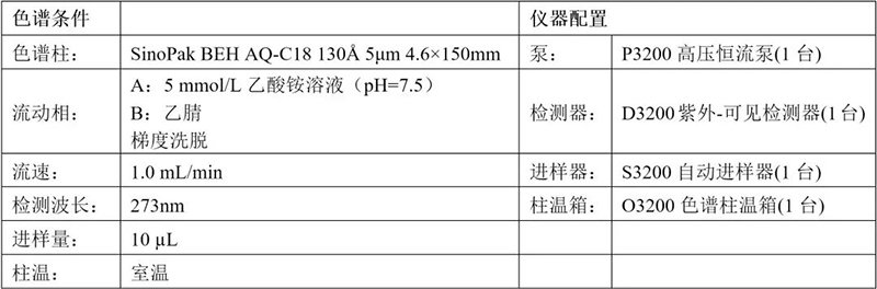 依利特新款的EClassical 3200液相色譜儀,搭配新款SinoPak BEH AQ-C18色譜柱,能很好的對咖啡因、可可堿、茶堿、黃嘌呤進行分析,且峰形良好,滿足定性定量分析的要求。