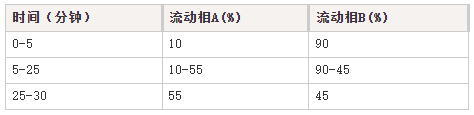 流動(dòng)相A:甲醇,流動(dòng)相B:2%醋酸水溶液