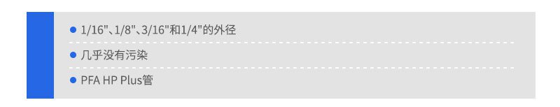 PFA HP Plus管是新產(chǎn)品,有1/16"和1/8"兩種規(guī)格,該聚合物具有Teflon PFA HP管無法超越的純度,而且對反復彎曲的承受能力更好,在含氟表面活性劑條件下耐用性更好。PFA HP Plus管比標準PFA HP管內(nèi)壁更平滑、更光潔。