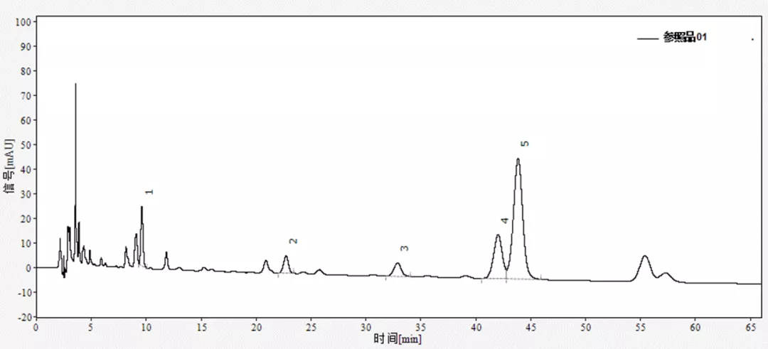 由此可見,使用依利特EClassical 3200高效液相色譜儀以及Supersil AQ-C18,測(cè)得的苦杏仁配方顆粒的特征圖譜滿足藥典要求。