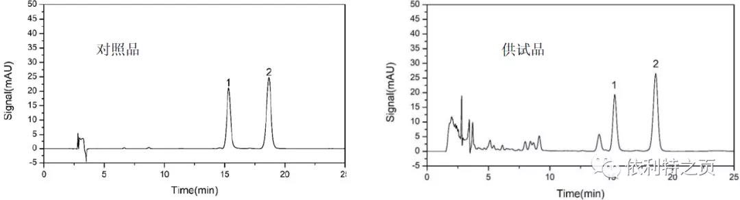 2.供試品溶液的制備:取裝量差異項下的本品內(nèi)容物,混勻,研細,取約0.1g,精密稱定,置50mL量瓶中,加70%乙醇40mL,搖勻,超聲處理(功率500W,頻率53kHz)40分鐘,放冷,加70%乙醇至刻度,搖勻,濾過,取續(xù)濾液,即得。
